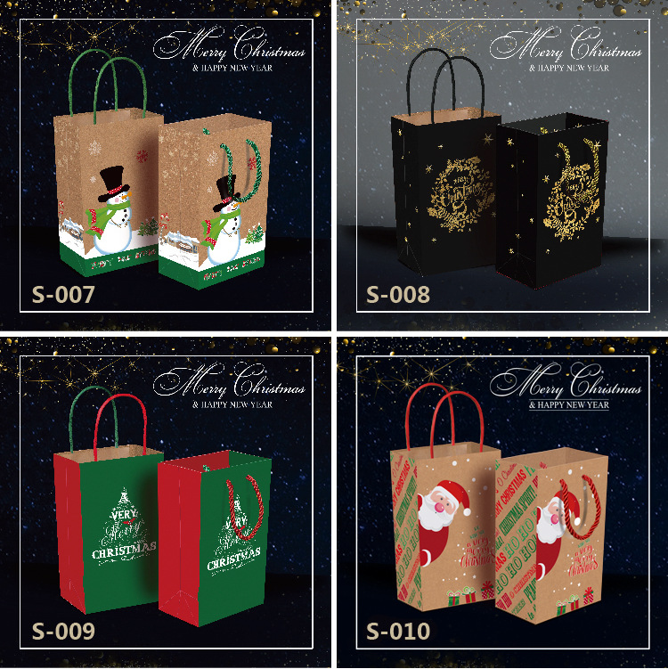 Introducing our custom-designed recyclable Christmas paper shopping bags. These bags offer a sustainable and festive packaging solution for your holiday shopping needs. Crafted from recycled kraft paper, they reflect our commitment to eco-friendliness. With 10 unique designs and 40 varieties, you can choose the perfect bag for every occasion. Produced using fully automated bag-making machines, these bags ensure consistent quality and efficiency. Each bag is conveniently bundled in sets of 10, giving you the option to choose 10 of the same design or mix and match different styles for a delightful assortment. Elevate your holiday shopping experience with our custom-designed recyclable Christmas paper bags, combining style, versatility, and sustainability for a memorable and environmentally-conscious season. Make your shopping extra special and eco-friendly this Christmas.